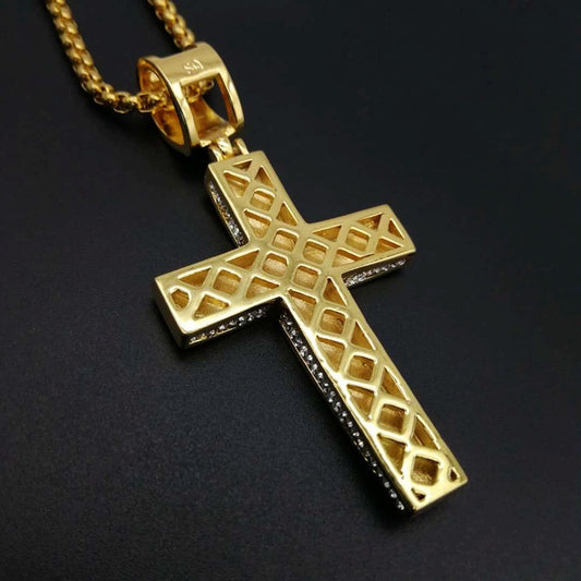 Eleganza Damen Titanstahl Vergoldete Diamant Kreuz Halskette