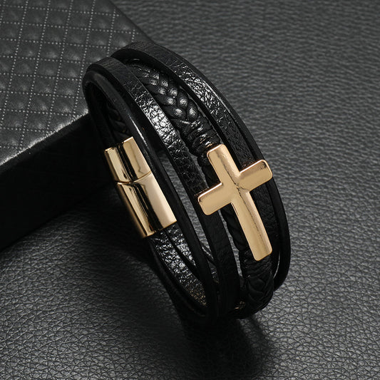 Eleganza Herren Multi-Layer Geflochtenes Lederarmband