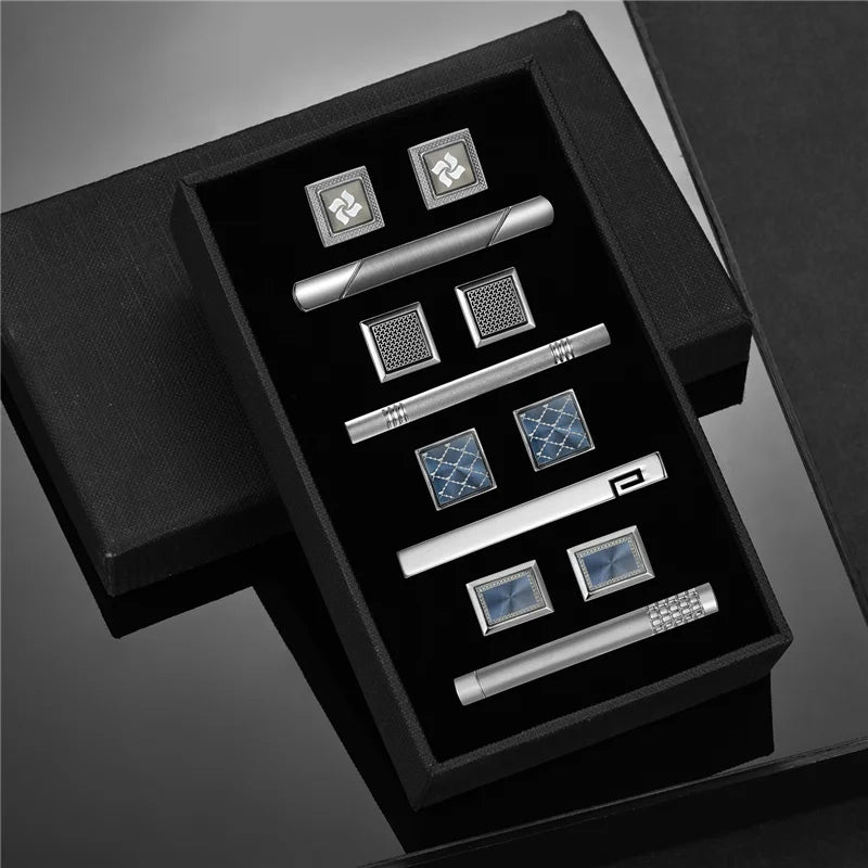 Set-Inhalt: Dieses Set umfasst vier hochwertige Krawattennadeln und passende Manschettenknöpfe, die Ihnen eine vielseitige Auswahl für verschiedene Outfits und Anlässe bieten.